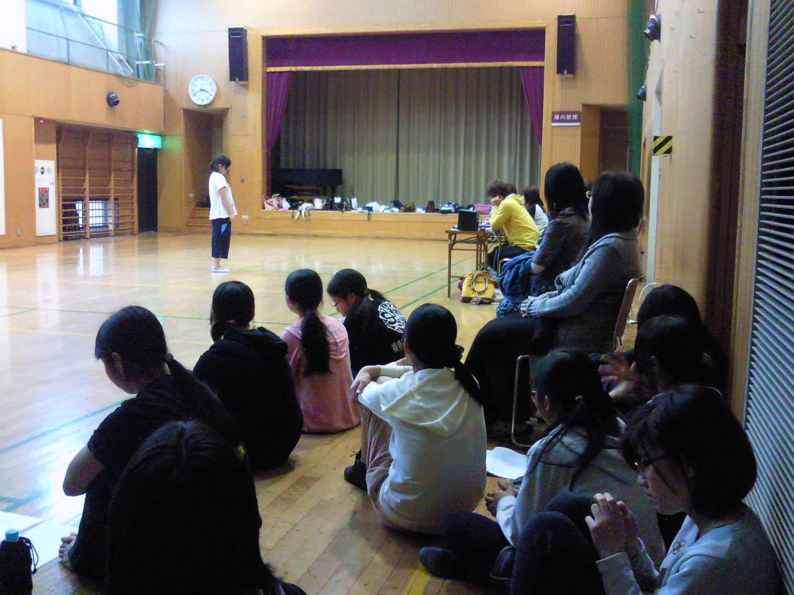 3月30日キャストオーディションでした。いや~スタッフの私(もじゃ子)は見てるだけでしたが、こっちまでキャストの緊張が伝わってまいります。だってこんな状態↓スタッフ、キャスト、保護者、そしてもちろん審査する演出家、振付師、音楽担当勢ぞろい。まずは演技。そして歌!さらにダンス!!盛りだくさんです。だってミュージカルですもの。オーディションの本番まで壁に向かって歌の練習したり、ダンスを復習したり・・・本番はみんなバッチリ決めてくれました。いや~みんなレベル高い!!今から本番が楽しみです。